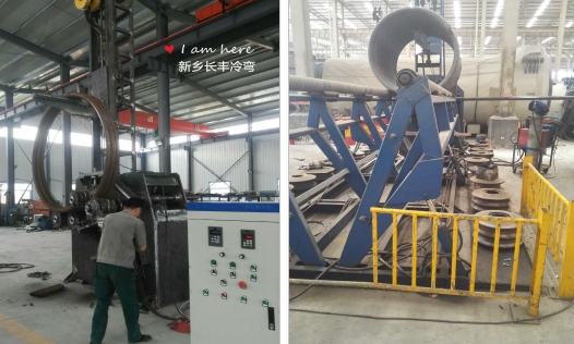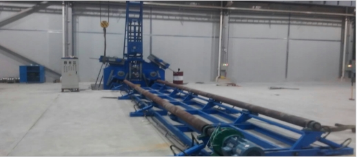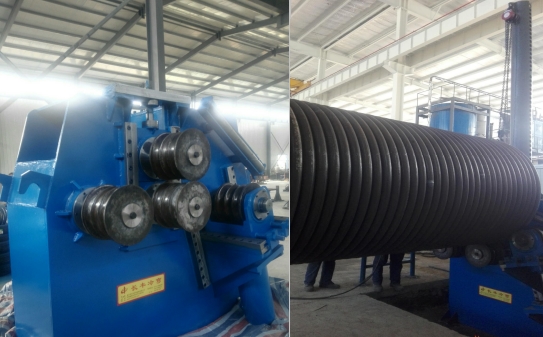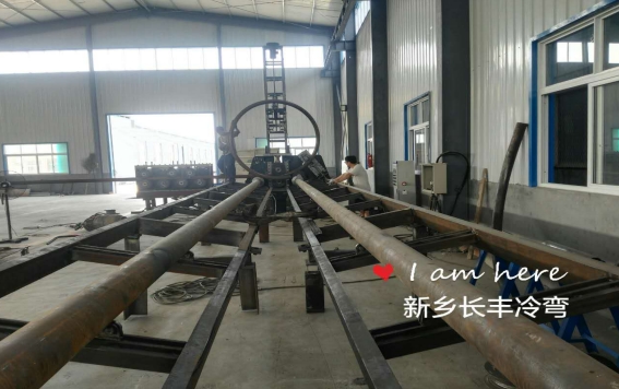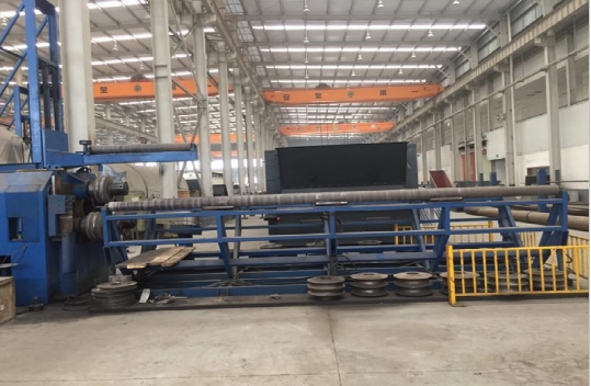 主要由基礎軌道系統(tǒng)、螺旋盤管主機、螺旋管立支撐料架、螺旋管水平出料料架、液壓系統(tǒng)、電控系統(tǒng)、模具等部分組成。