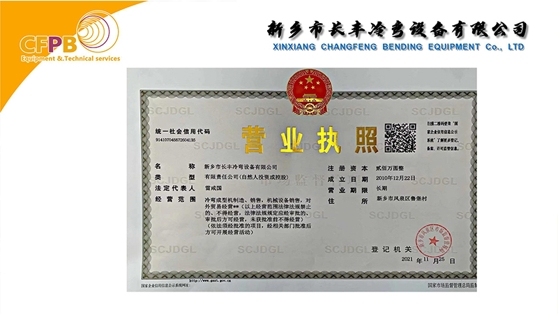新鄉(xiāng)市長豐冷彎設(shè)備有限公司,是一家通過認(rèn)證的、擁有自主知識產(chǎn)權(quán)和自主研發(fā)制造能力,獨(dú)立進(jìn)行冷彎成型設(shè)備的制造、銷售,和服務(wù)于一體的高新技術(shù)企業(yè)。