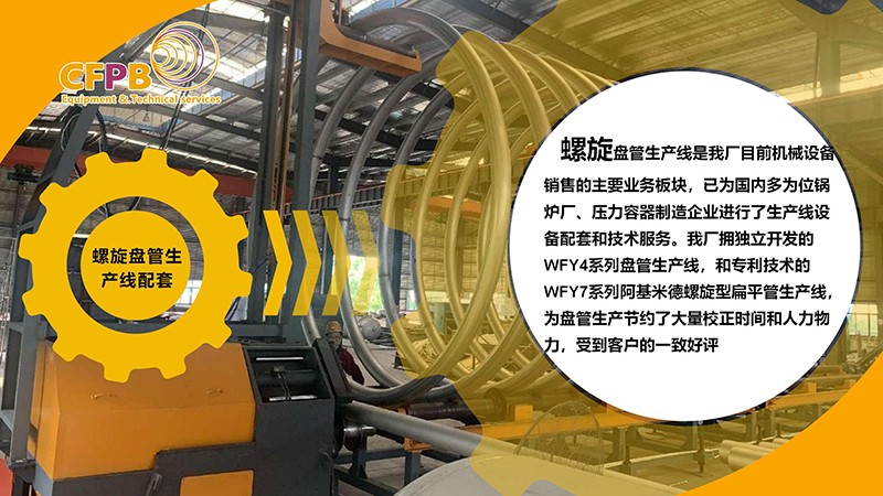 螺旋盤管生產(chǎn)線是我廠目前機(jī)械設(shè)備銷售的主要業(yè)務(wù)板塊,已為國內(nèi)多為位鍋爐廠、壓力容器制造企業(yè)進(jìn)行了生產(chǎn)線設(shè)備配套和技術(shù)服務(wù)。我廠擁獨(dú)立開發(fā)的WFY4系列盤管生產(chǎn)線,和擁有專利技術(shù)的WFY7系列阿基米德螺旋型扁平管生產(chǎn)線,為盤管生產(chǎn)節(jié)約了大量校正時間和人力物力,受到客戶的一致好評。